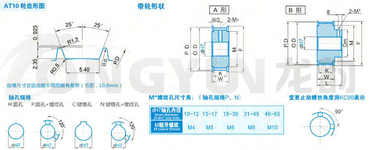 規格 形狀 節徑P.D 外徑O.D 擋邊外徑F 擋邊內徑M 輪轂直徑Dm 內孔dH7