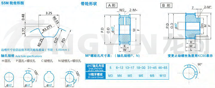 | 規格 | 形狀 | 節徑P.D | 外徑O.D | 擋邊外徑F | 擋邊內徑M | 輪轂直徑Dm | 內孔dH7 | |||||