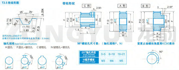 | 規格 | 形狀 | 節徑P.D | 外徑O.D | 擋邊外徑F | 擋邊內徑M | 輪轂直徑Dm | 內孔dH7 | ||||